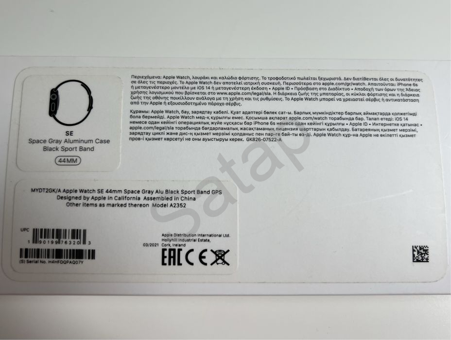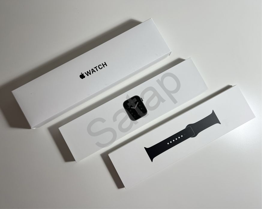 Apple watch SE 44mm, Space Gray Aluminium Case with Black Sport Brand.
